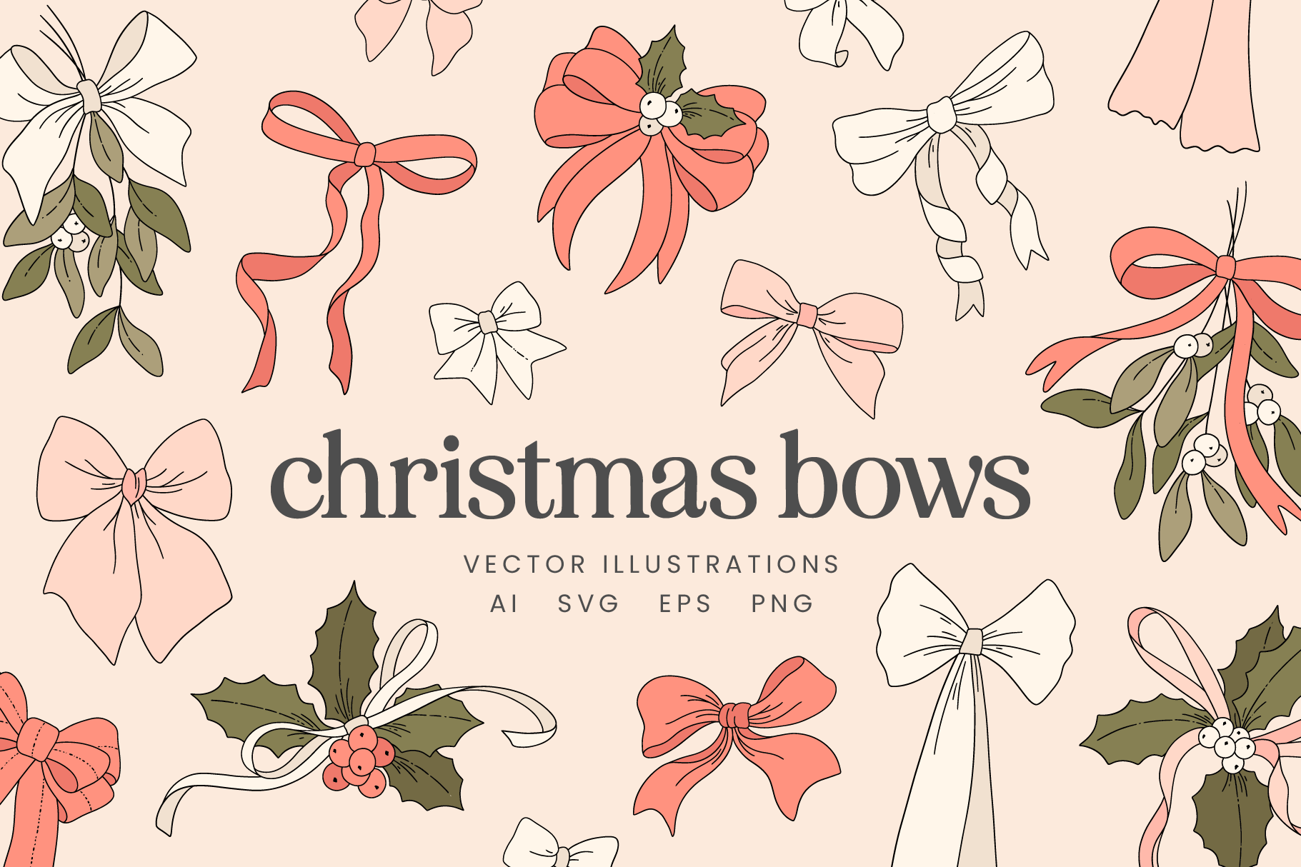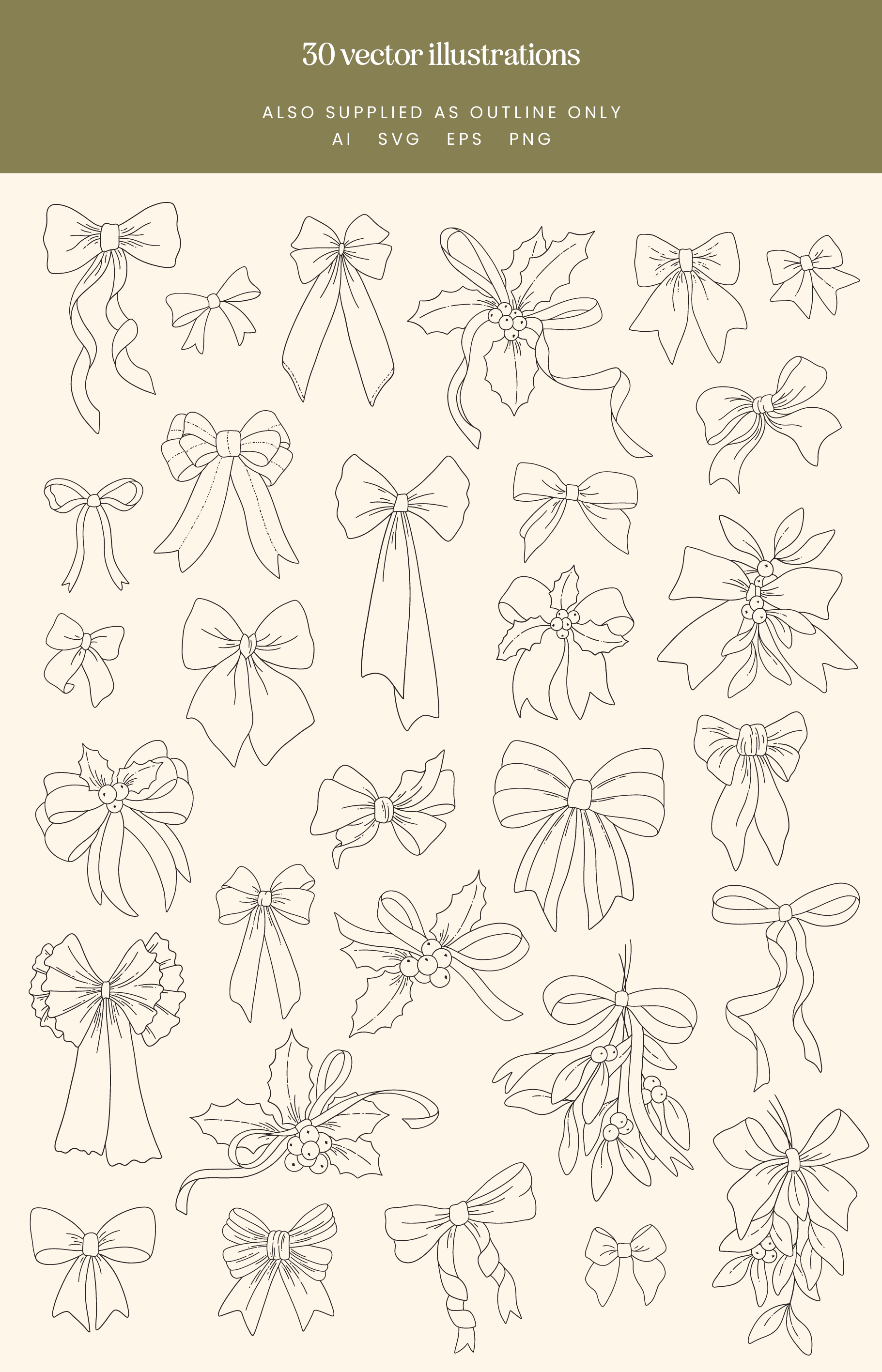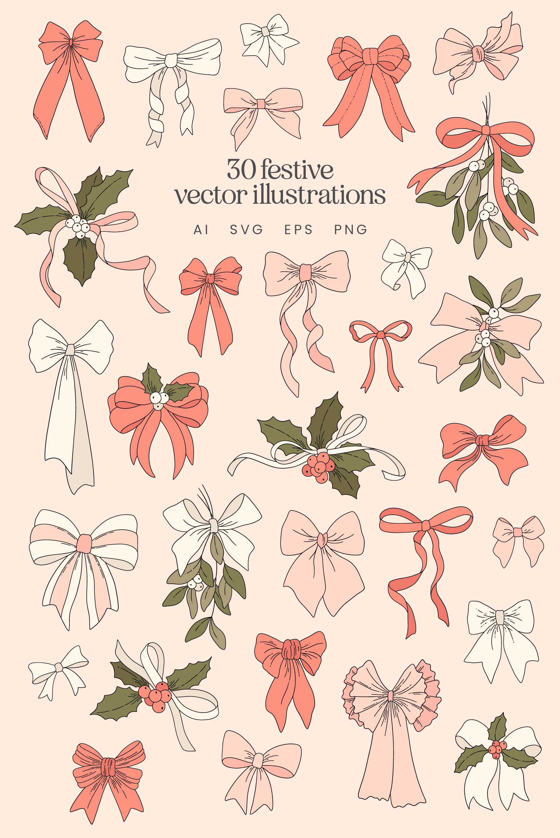 30 Christmas Bows Vector Illustrations